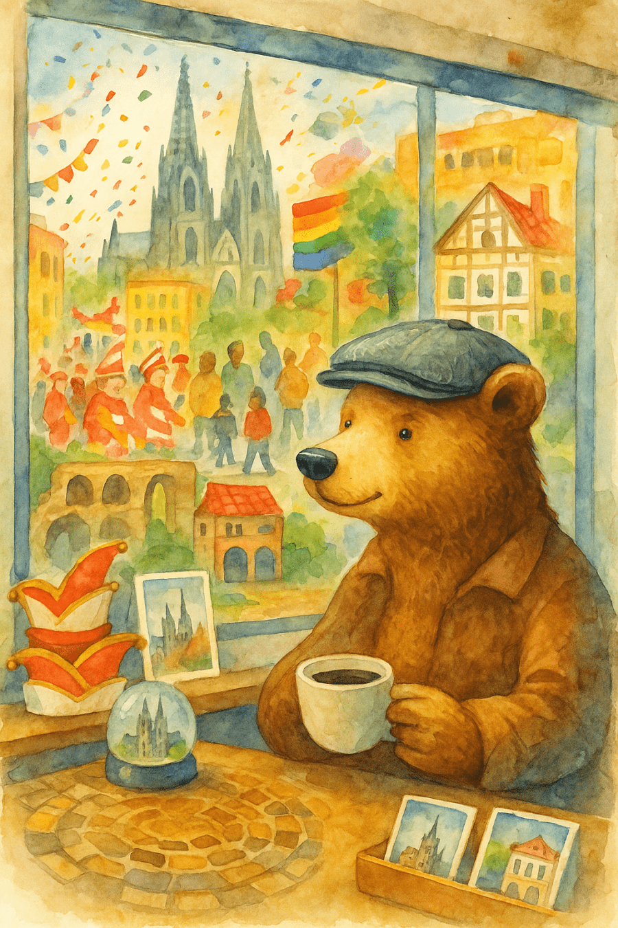 Der Bär denkt – vielleicht reduktiv und in Klischees, aber mit einem Schmunzeln: Diese Stadt lebt nicht von einem roten Faden, sondern von einem ganzen Knäuel.Da ist der Katholizismus, jahrhundertelang das Grundrauschen. Da ist der Karneval – nicht uralt, aber so schlau erfunden, dass er sich wie ein alter Brauch anfühlt. Da ist der CSD, bunt und politisch. Und da sind die Arbeiter, die nach dem Krieg kamen: erst Italiener mit Eisdielen, Espresso und Ristorante, dann Griechen mit Tavernen und Olivenöl, Türken mit Kebap und Werkbank, später Marokkaner, Kurden, Vietnamesen und viele, viele andere. Alles Postkartenbilder, denkt Faulmann, und weiß, dass er es sich damit zu einfach macht. Aber möglicherweise wächst am Ende doch das Gefühl einer Stadt genau aus solchen Bildern. Jeder Zug brachte seinen Klang, sein Essen, seine Geschichten, seine Kultur – und Köln nahm sie auf so selbstverständlich und mit einem breiten Grinsen, wie der Köbes ein neues Glas Kölsch hinstellt.